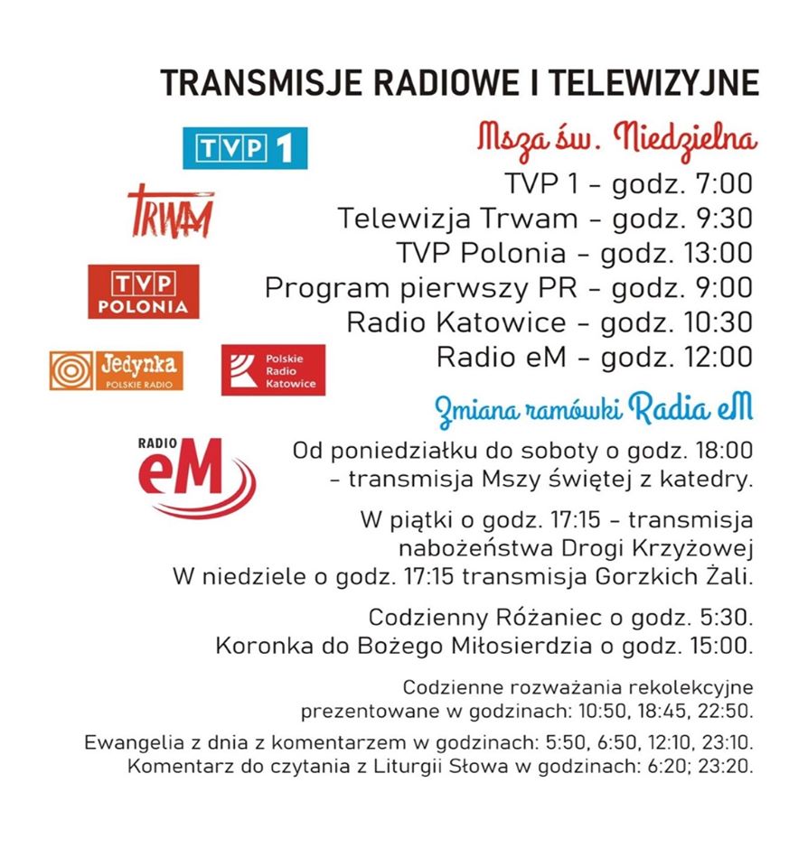 – Msze Święte będą odprawiane o zwykłych porach, ale prosimy o skorzystanie z dyspensy od niedzielnej mszy i POZOSTANIE W DOMACH (uczestniczyć w Mszy Świętej można korzystając ze wsparcia np. transmisji telewizyjnej, mszy online, itp.